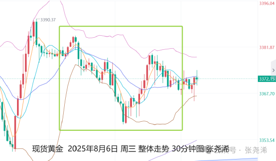 8月7日:上交易日周三(8月6日):国际黄金偏触底回升式震荡收跌,其走势自亚市开于3380.83美元,先行录得日内高点3385.14美元全国最好股票配资平台,后回落于欧盘录得日内低点3358.04美元,之后触底回升,美盘又遇阻开盘价一线阻力,最终收于3369.18美元,日振幅27.1美元,收跌11.65美元,跌幅0.34%。
